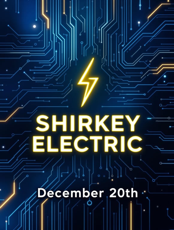 Poster for an electric company called "Shirkey Electric" on December 20th
